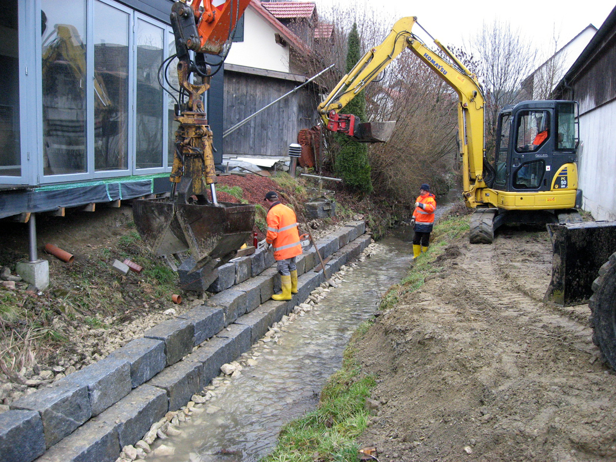 - Bau von Stützmauern aus Naturstein, Pflanzsteinen oder Beton L-Steinen